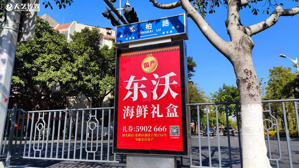 2021開年大吉,東沃海鮮與天藝傳媒攜手,全市百座路名牌提前預(yù)祝:祝廈門全市人民2021年年有余,新年節(jié)節(jié)高。