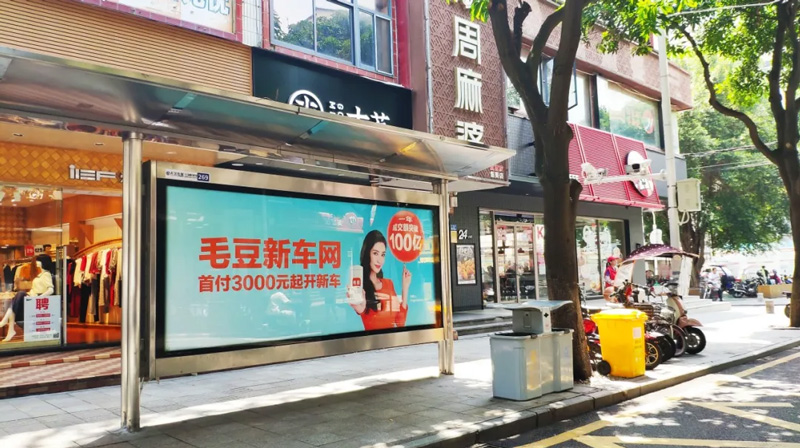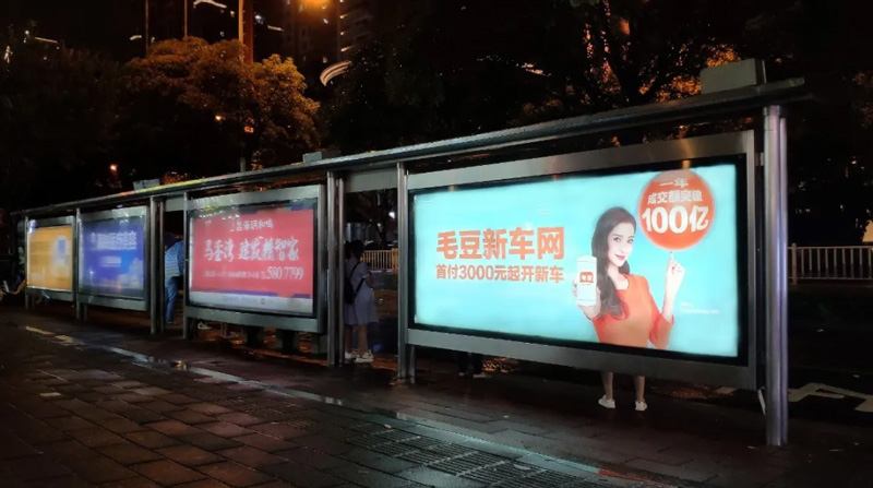 年輕一代有購車需求的受眾們,每日都能在城市出行中必定要長時(shí)間停靠的候車亭中,通過大面積的畫面刺激及重復(fù)接觸,將毛豆新車網(wǎng)品牌植入人心。