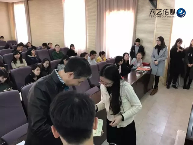 黨委副書(shū)記黃輝先生特別提到:“林少敏董事長(zhǎng)是我們的校友,畢業(yè)后曾留校擔(dān)任藝術(shù)學(xué)院團(tuán)委書(shū)記,之后下海創(chuàng)業(yè),創(chuàng)辦了廈門市天藝傳媒股份有限公司。在他的帶領(lǐng)下,經(jīng)過(guò)20多年的努力,天藝傳媒發(fā)展成為福建省第一家上市的戶外傳媒類企業(yè),也是廈門市戶外廣告的龍頭企業(yè)。同學(xué)們今后在公交車站候車時(shí)留意一下,可以看到天藝傳媒的身影,天藝傳媒設(shè)計(jì)建設(shè)了福建省第一座燈箱式候車亭,并且擁有多個(gè)城市路名牌專利,多次被民政部表彰。今年7月,天藝傳媒與我院簽訂了戰(zhàn)略合作協(xié)議,天藝傳媒捐助10.8萬(wàn)元設(shè)立天藝文創(chuàng)獎(jiǎng)學(xué)金,獎(jiǎng)勵(lì)在文創(chuàng)領(lǐng)域有創(chuàng)想、有潛力、有成果的優(yōu)秀學(xué)子。并將為同學(xué)們提供實(shí)習(xí)實(shí)踐機(jī)會(huì),與學(xué)院共同建設(shè)文創(chuàng)項(xiàng)目孵化基地。在此,讓我們?cè)俅斡脽崃业恼坡晫?duì)林少敏學(xué)長(zhǎng)表示衷心的感謝。”